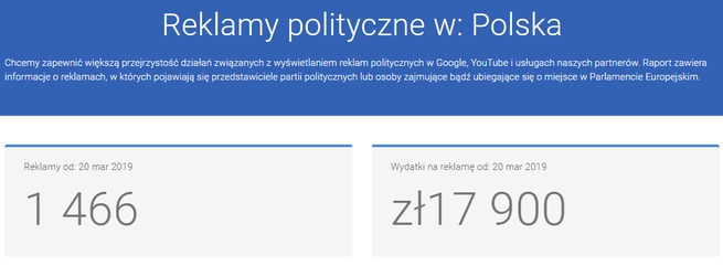 Po to by wyborcy mogli lepiej zrozumieć jaki polityczny przekaz jest im prezentowany za pośrednictwem reklam, Google udostępnił Raport Przejrzystości Reklam Politycznych, gdzie znajdują się informacje o wszystkich reklamach wyborczych w UE, kosztach ich wyświetlenia oraz grupach osób, do których były kierowane.